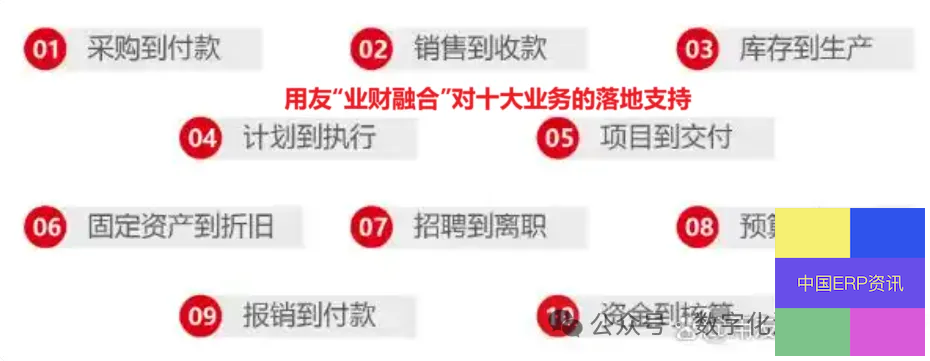 用友ERP业财融合助推实现企业10大典型业务落地,基本涵盖企业全业务链条。