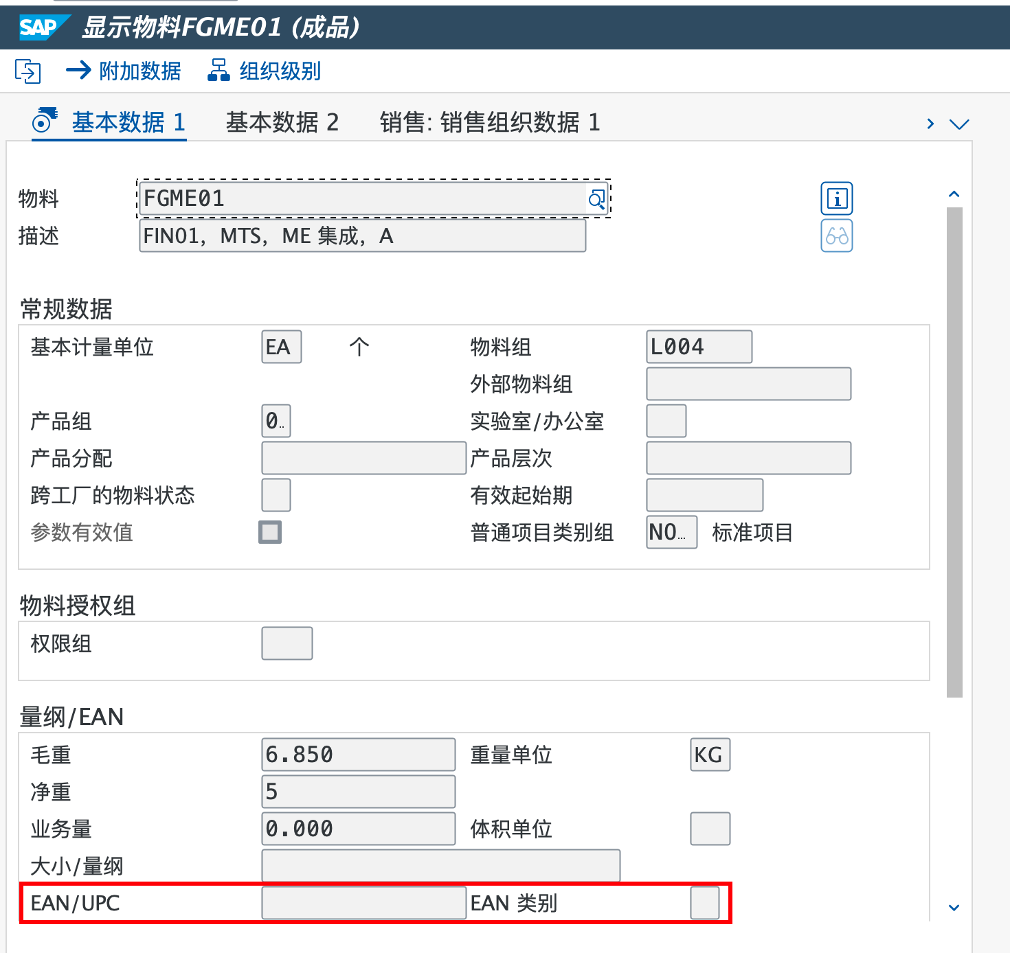 根据欧盟《通用产品代码条例》,出口欧洲的商品需强制使用EAN。SAP通过该字段自动校验合规性,避免因编码错误导致的贸易纠纷。