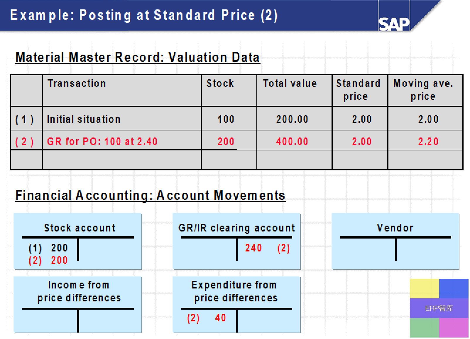 移动平均价格下,物料收发直接按照当前的移动平均价格记账,不存在专门的价格差异科目。每一次采购收货或发票校验后,系统自动更新移动平均价格和库存价值。因此,财务核算相对简单,不需要进行复杂的价格差异分摊处理。