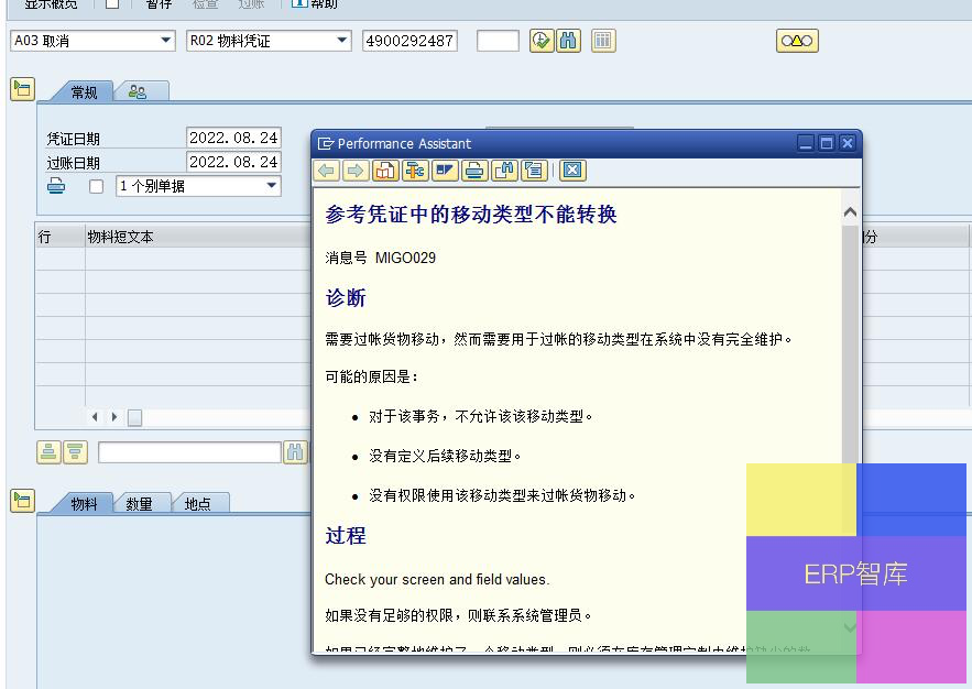 调用事务 OMJJ输入自定义移动类型,例如:Z01双击名为 - 冲销/后续移动类型的文件夹对于 MIGO 中的物料凭证冲销,可以使用功能代码 SN 或 ST,因此在此示例中,输入移动类型 Z01,功能代码为 SN & ST,冲销移动类型适当。例如,请参阅下图比较标准移动类型 101 的条目可以使用事务 SM30 和视图 V_156N_VC 添加或修改 T156n 表条目